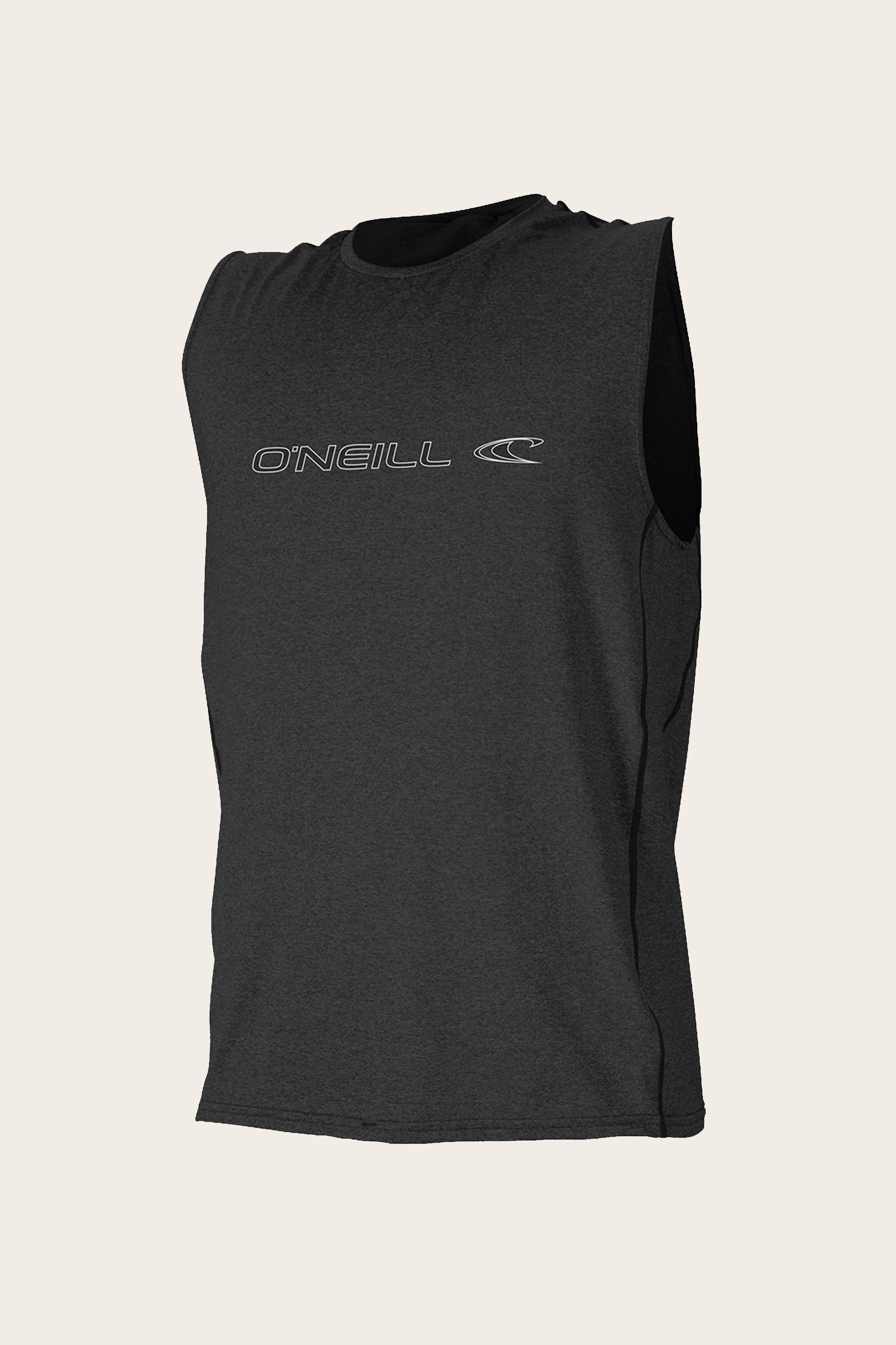 The O' Neill Hybrid Series protects against Uv exposure and board rash with casual in-and-out of the water versatility. Our Heathered Hyper Dry fabric has a soft, cotton-like feel yet dries three times quicker providing all day comfort. U. P. F. 50+ Ultraviolet Protection Hydrophobic Hyper Dry Technology4-way stretch Rash Protection Protection from the Elements For use in & out of the water Slim Fit Reduces Fatigue From Sun Exposure5oz Heathered Hyper Dry Overlock Stitched: Super- Strong Seam S T Y L E#: On4882 / Oneill Wetsuits Mens Rashguard Hybrid Sleeveless Tee Shirt in Black / Small / Cotton