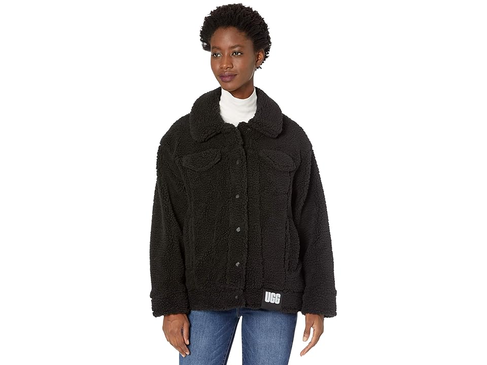 UGG Frankie Sherpa Trucker Jacket features a rounded-collar jacket; full snap-button placket, side hand pockets and a straight hemline. Sure to keep you warm while serving a chic-fashion forward aesthetic! 100% polyester. Hand wash cold, hang to dry Imported.