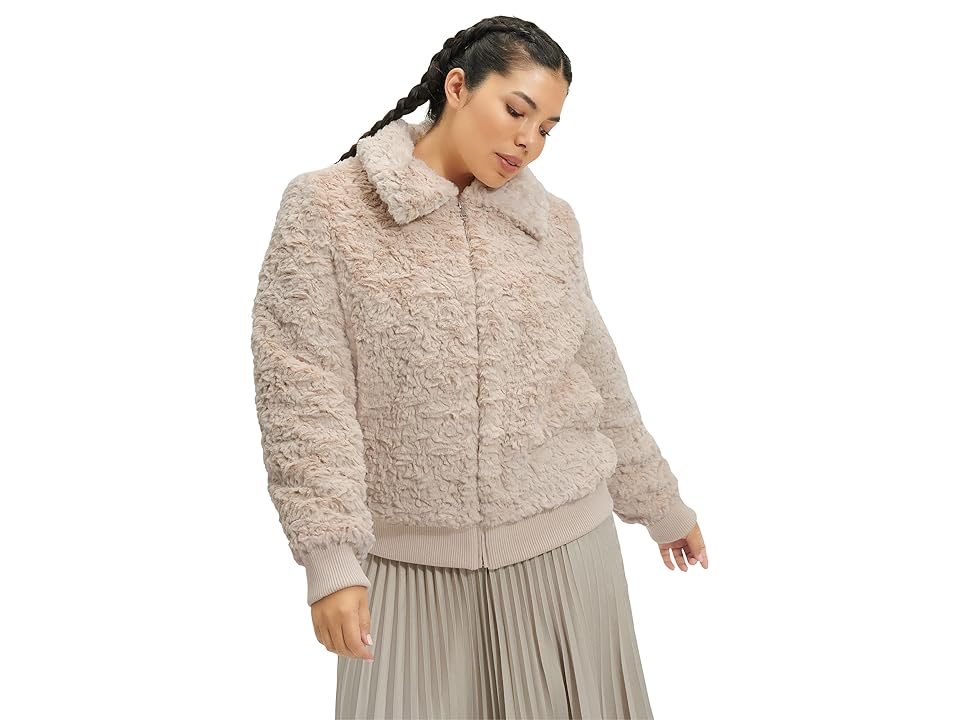 Stun everyone around you wearing the UGG Viviana Bomber Jacket Faux Fur Jacket. Classic fit. Long sleeves and collar neck. Diamond quilted lining. Ribbed hem and cuffs. Center front zippered closure. Metal zipper and pull with DTM binding. Side on-seam pockets. 100% polyester; Lining: 100% polyester fill. Dry-clean. Imported.
