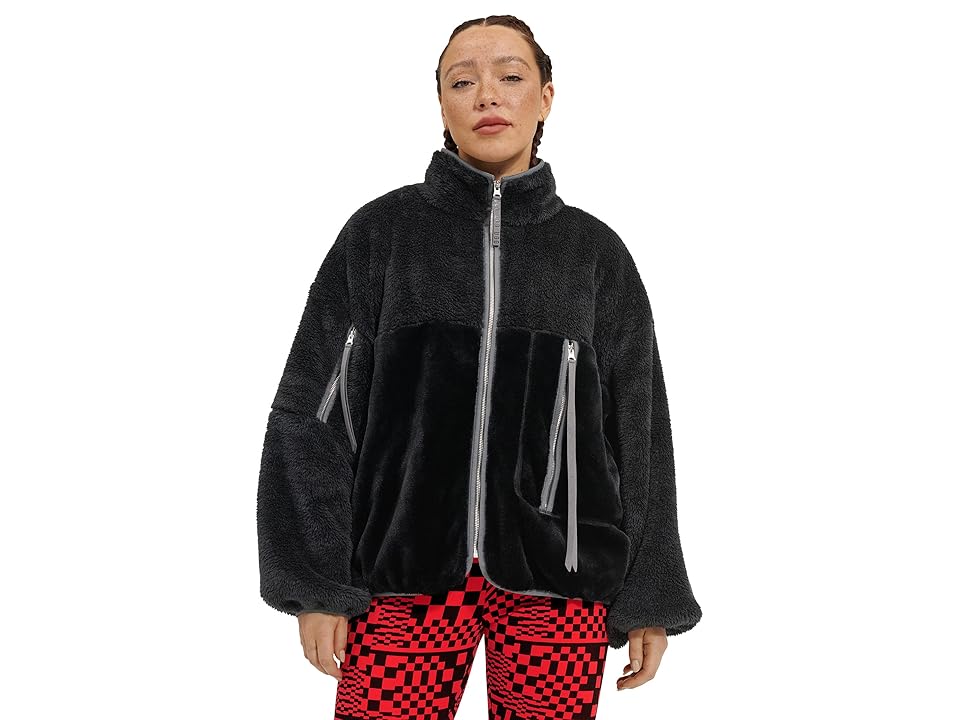 Feel the snuggly pampered warmth wearing UGG Marlene Sherpa Jacket II. Relaxed fit. Stand collar. Full-zip closure. Long sleeves. Pockets: Front zipper pocket. Arm zipper pocket. UGG graphic exaggerated embossed faux suede zipper pull. Pop color knit binding along center front closure, hem, pocket zipper plackets, and cuffs. Fabric: Body: 100% polyester; Lining: 100% cotton. Machine wash, tumble dry. Imported.