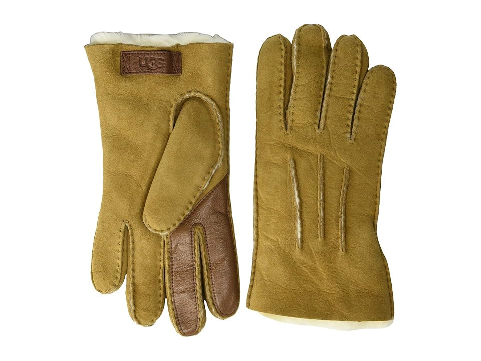Keep your hands warm and cozy while texting your BFF back in these UGG Contrast Water Resistant Sheepskin Tech Gloves. The water-resistant leather offers a touchscreen-friendly panels for use with your devices. Plush shearling lining. 100% leather. Lining: 100% shearling. Imported. Real lamb fur has been artificially dyed and treated. Fur origin: Spain.
