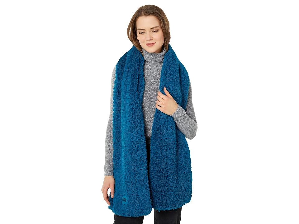 With the same soft feel as your favorite blanket, this luxurious sherpa scarf offers oversized construction for maximum coverage and endless styling options. Featuring a UGG graphic logo patch, it pairs with jeans, jackets, and puffer coats, adding textured flair to virtually any outfit. 100% polyester; Lining: 95% cotton, 5% elastane. Hand wash, dry flat. Imported.