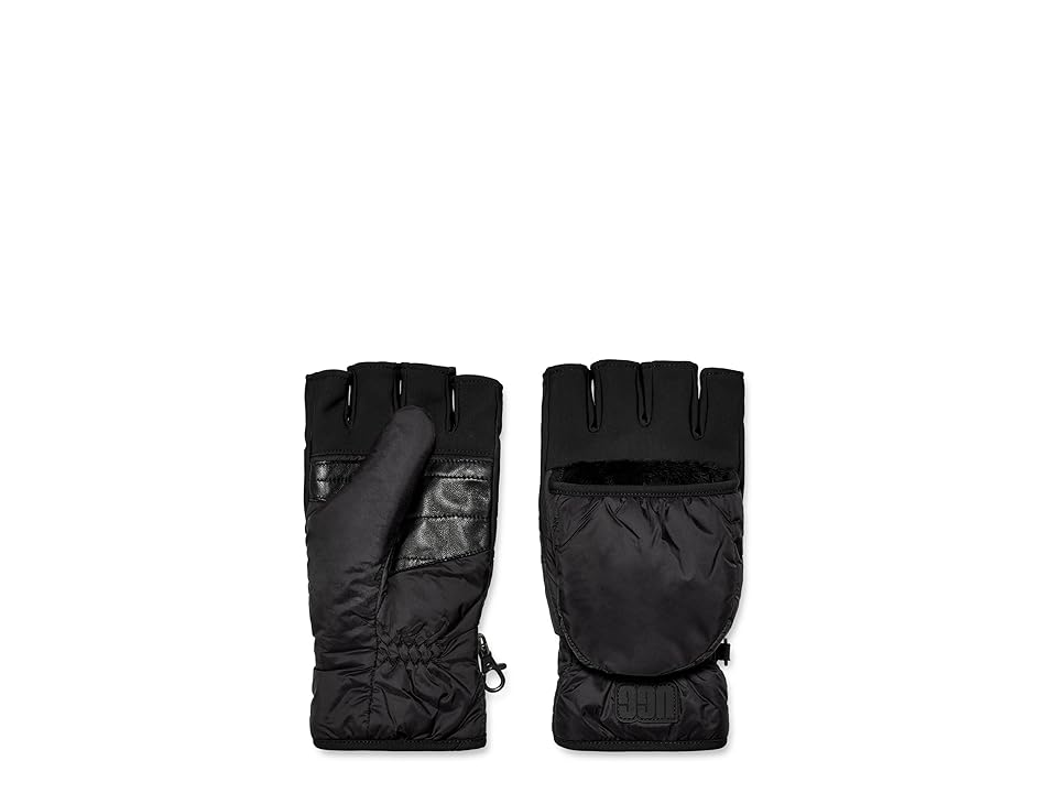 The primary materials that compose this product contain a minimum of 20 percent recycled content. Enable your hands for better movement on chilly days by wearing UGG Water-Resistant Recycled Nylon Flip Mitten with Recycled Micofur Lining. The mitten features a Silicone UGG Graphic Logo. The water-resistant mitten comes with mitten clips. Fabric: Shell: 100% recycled nylon; Lining: 100% polyester; Palm: leather; Insulation: 100% recycled polyester. Hand wash, dry flat. Imported.