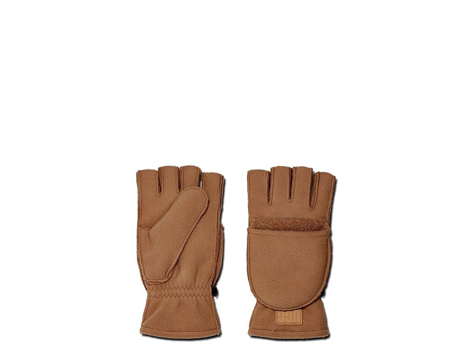 The primary materials that compose this product contain a minimum of 20 percent recycled content. Featuring a fingerless pair of gloves to keep you warm, the UGG Recycled Fleece Flip Mittens are crafted from a bonded fleece fabric for a soft and cozy feel. This pair has a faux fur design along with synthetic fibers woven together for a luxurious fluffy feel. The cinch closure offers a secure fit. UGG graphic logo button. Face side: 95% BCI cotton, 5% elastane stretch jersey; Back side: 100% recycled polyester fluffy fleece. Machine washable. Imported.
