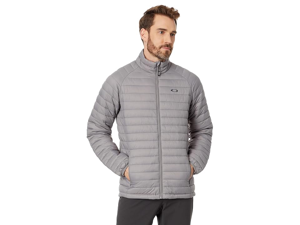 Cover yourself this windy season with a warm and cozy Oakley Omni Thermal Jacket. Mock collar and long sleeves with elasticized cuffs. Zippered front closure. Two zippered hand pockets. Brand logo on the left chest and brand text at the nape. Curved hemline. 100% polyamide; Lining: 100% polyamide; Filling: 100% polyester. Machine wash, line dry. Imported.