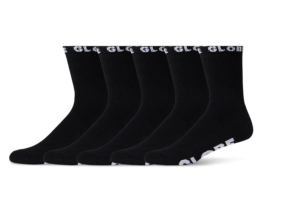 Walk to your own beat wearing the Globe Black Out Crew Sock. This pack of quality performance socks with comfort features crew length, perfect fit, desired arch support and contrasting logos for a finished look. 75% cotton, 22% nylon, 3% elastane. Machine washable. Imported.
