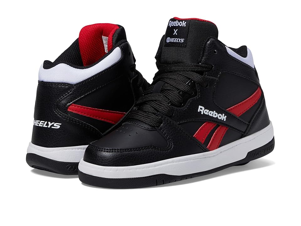 All Heelys styles come equipped with removable wheels, making them a versatile footwear option for every step from the classroom to the coffee shop. Roll into style sporting the Heelys Reebok BB4500 Mid! This exclusive collaboration blends sleek leather, a supportive nylon lining, and an EVA insole for comfort. Its rubber outsole ensures durability, while a lace-up closure offers a secure fit. Perfect for on-the-go fun, this wheeled footwear features a closed toe design and includes covers with a plug remover for versatility. Imported.
