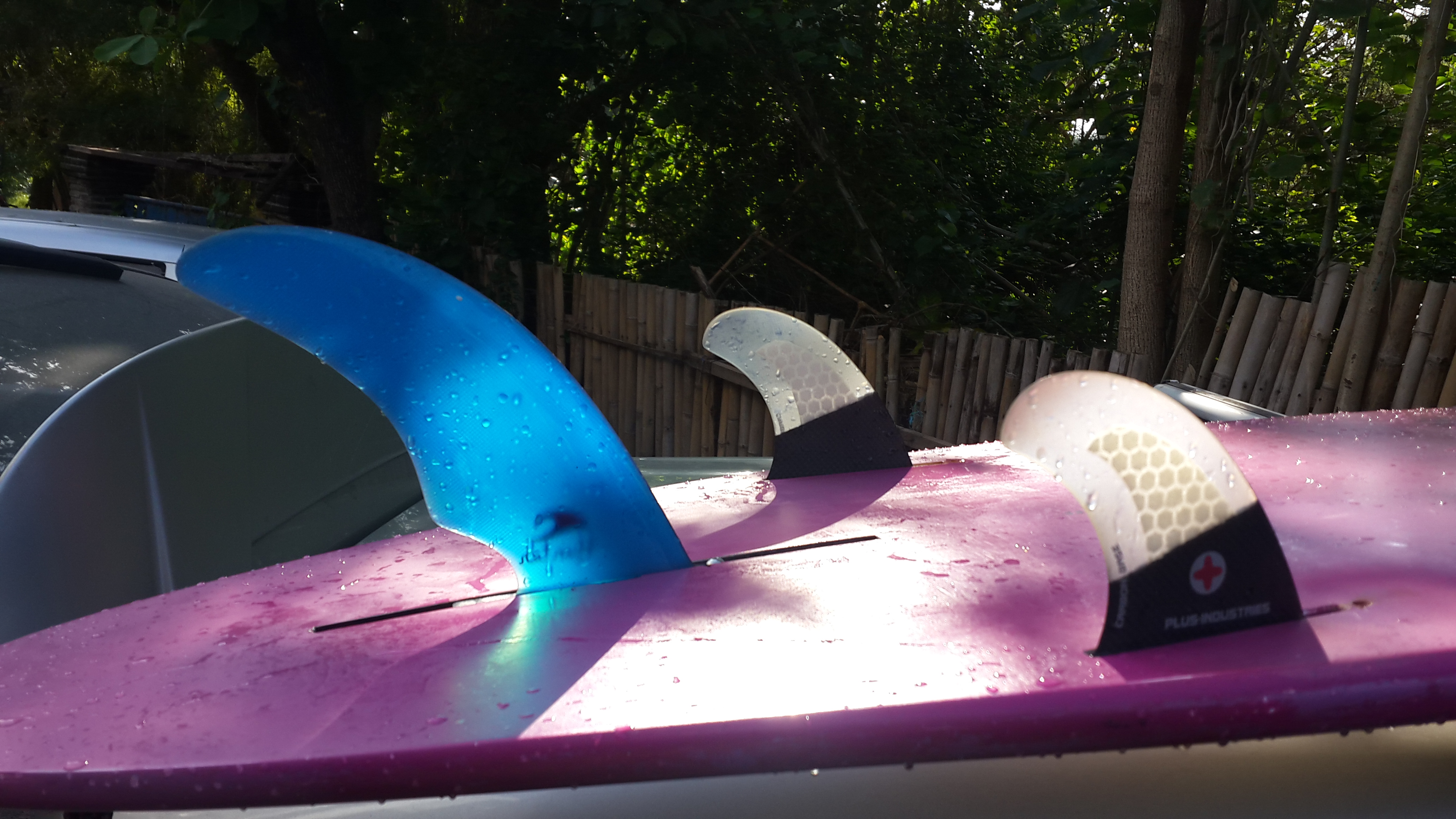 Pulled out the longboard today; had this set up. Sold the white tolhurst and got this board about half a year ago now I think and replaced it with this Jimmy Lewis 9'2". Tried it as a 2+1 with different sizes and combinations, as a single fin with a few different fins I have (like the 9" 4a in it) and then got a 6.5" cutaway (pictured) and grabbed some quad trailers I had and stuck them in as side bites. Third time out with this set up and am really pleased; more grip on the wave than the single, can take different lines, and the board still seems as responsive as before; doesn't track like some of the other 2+1 setups that I had tried before. Good times!
