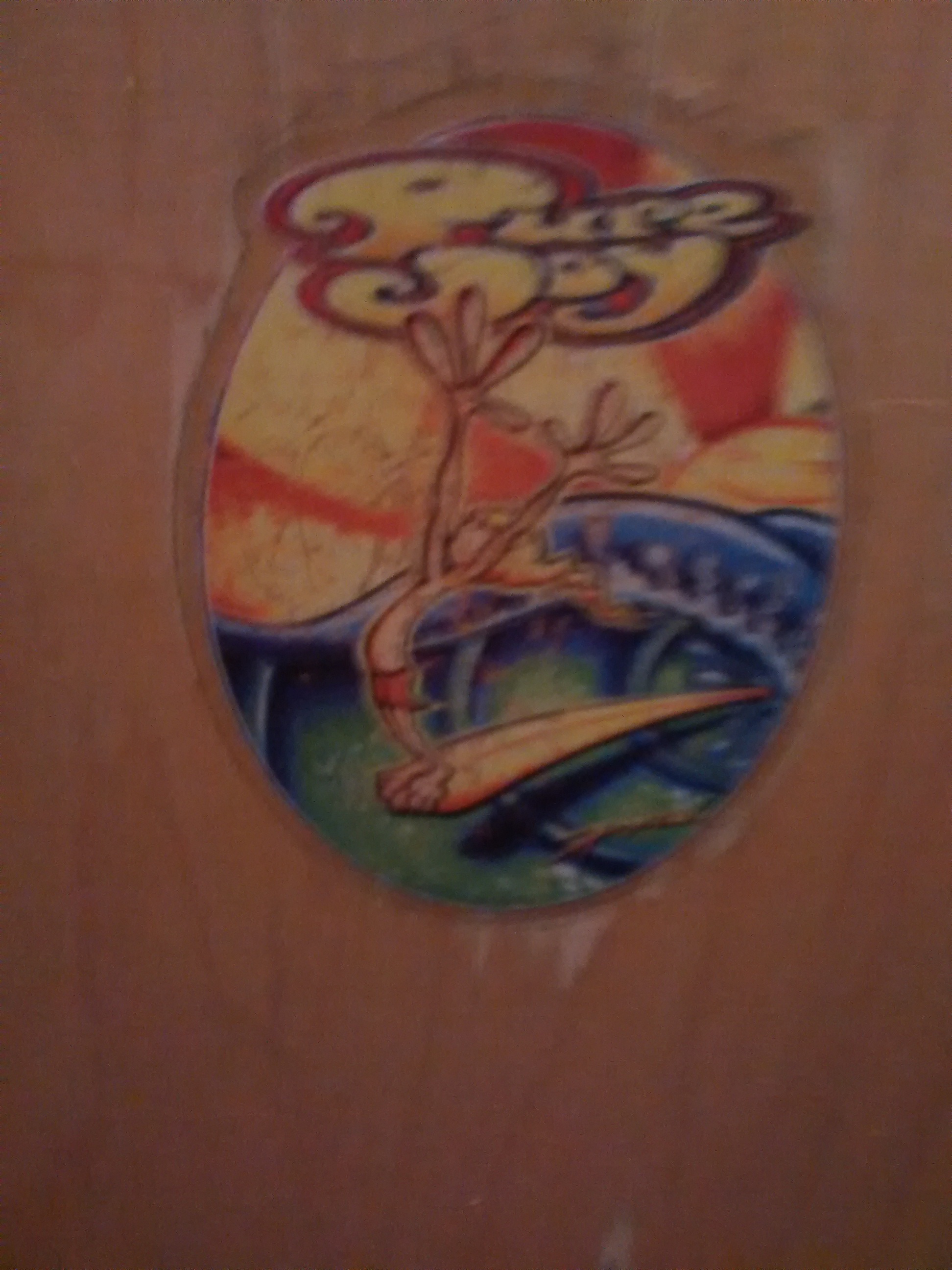 He does painting on surfboards and has his art on t-shirts, Indo boards, etc. Never seen a skateboard though. He has this picture for sale on his website as a giclee.