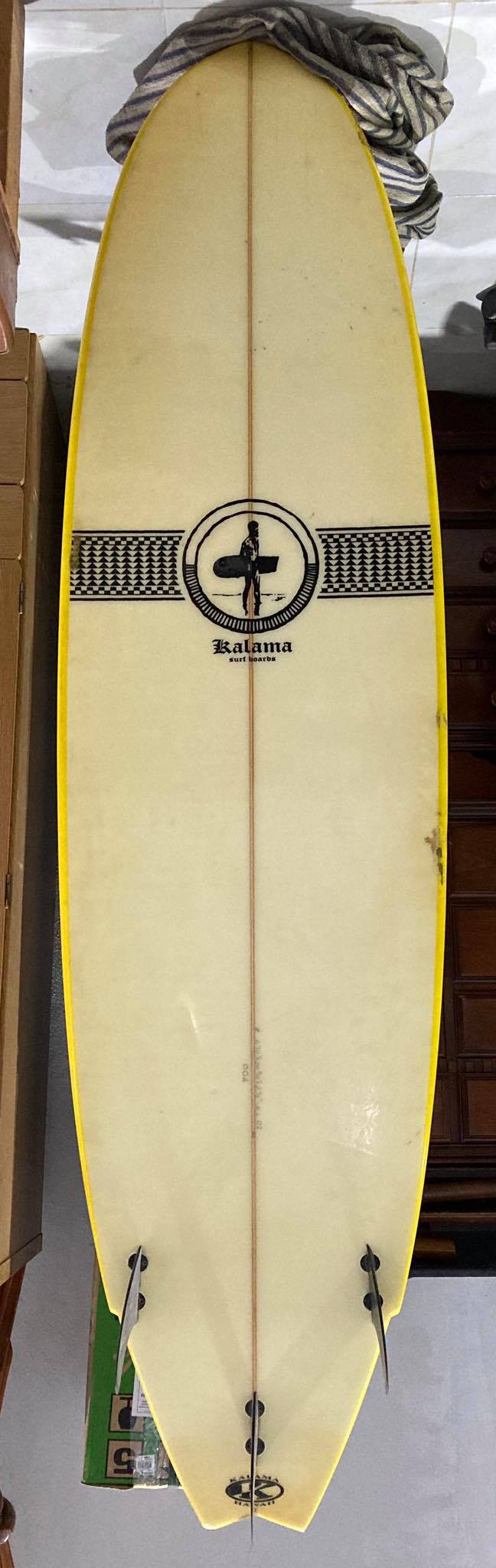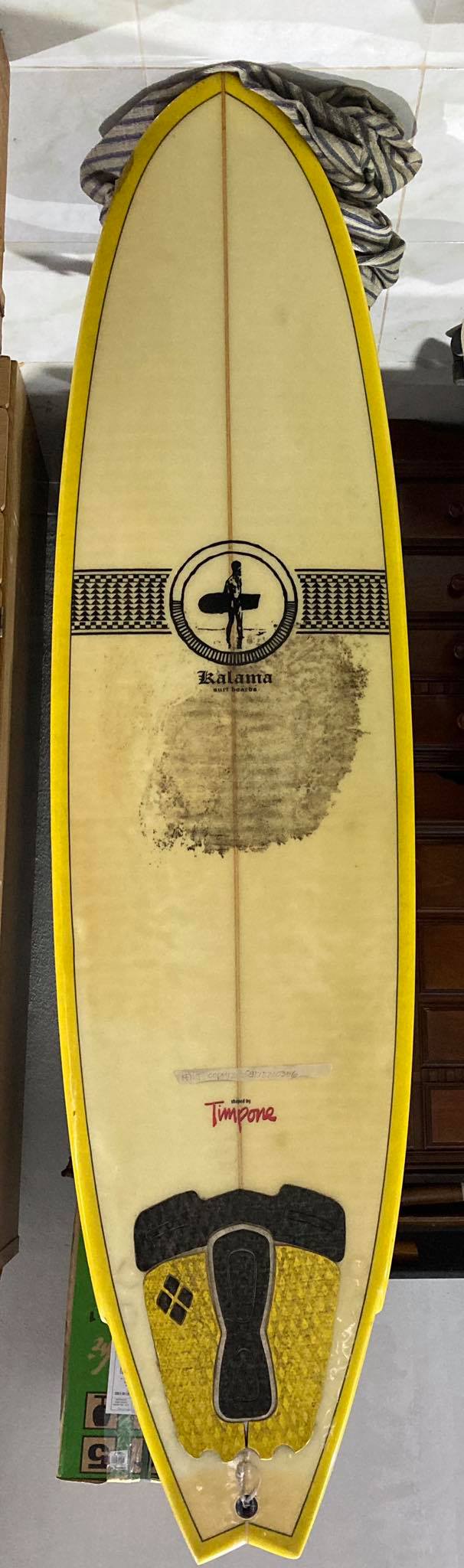 i came across a local used goods shop, and saw a 6'10" board that says "kalama" on it, and "timpone" down at the bottom of the board.
