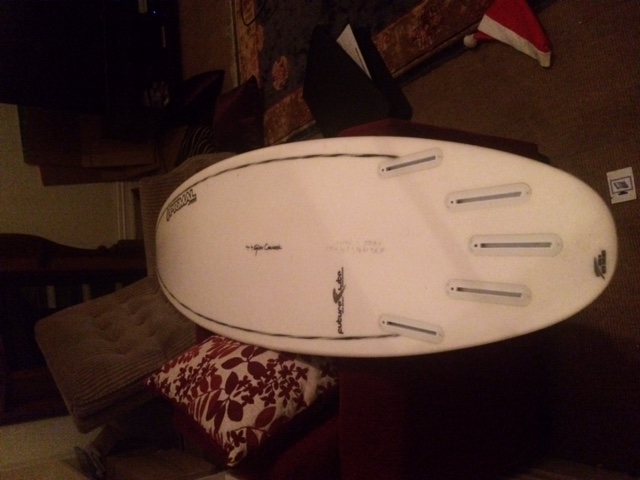 It does beg the question why not just use bigger size back fins to compensate for the tail slip, and I've tried different combinations, M3's in back , double 5 centers, etc... which I have tried. The result is that when you do bigger size back fins you end up with about the same feel as you would a thrusters, so stopped tinkering with it and do as I stated above.