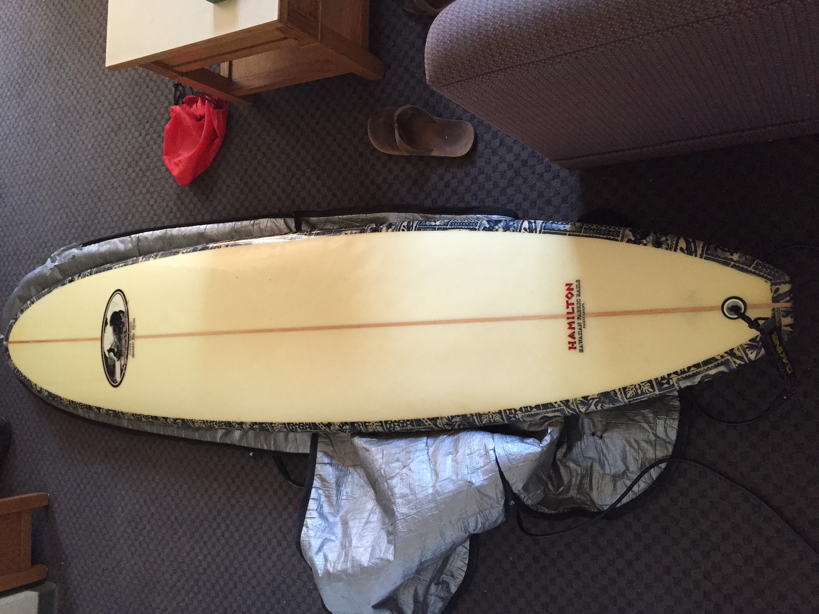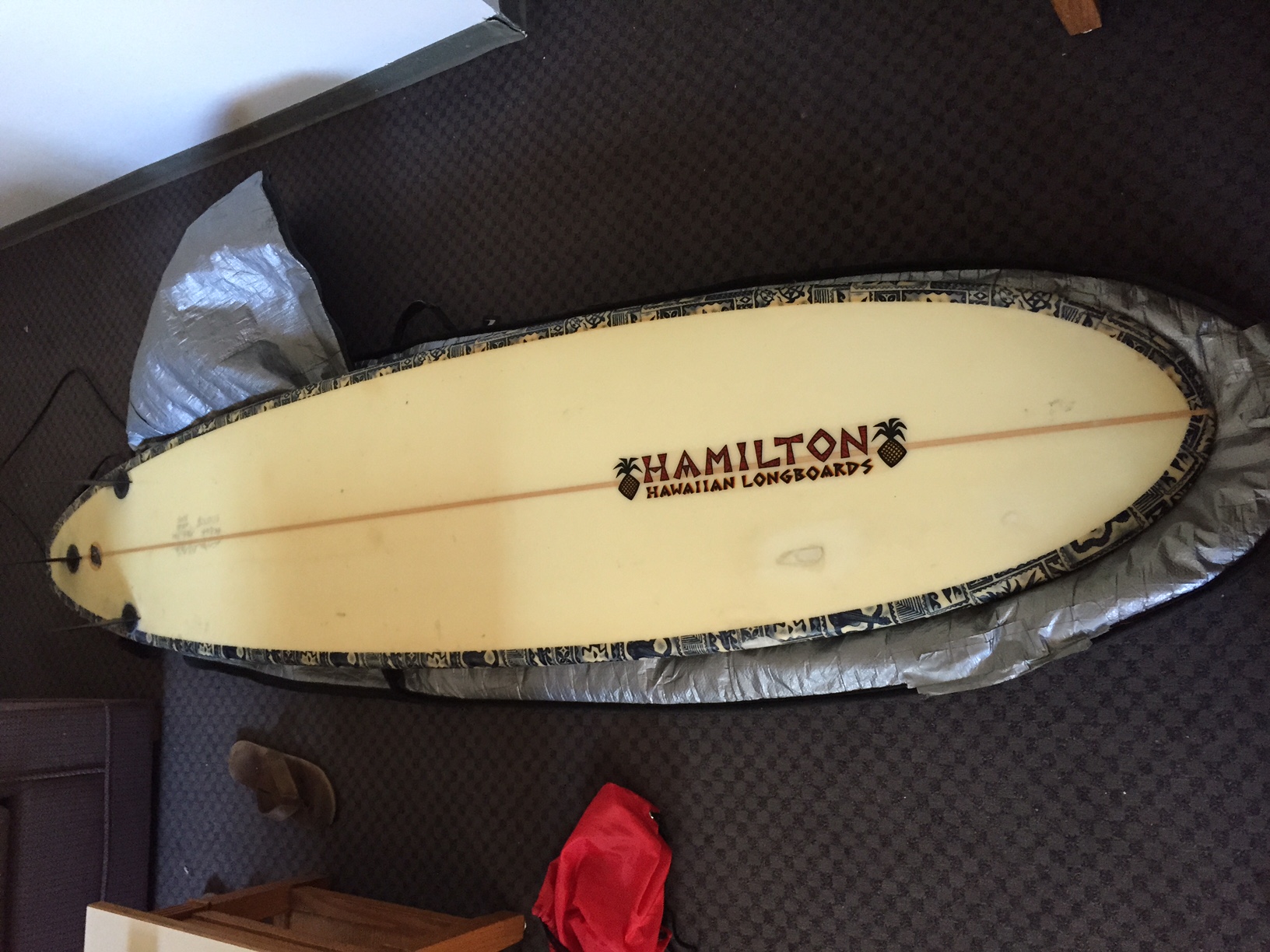 As I am new to surfing, I wanted to get a price estimate on a longboard I recently bought off of Craigslist. It's a custom made Bill Hamilton, 8' 1'' from 2003 in excellent condition. I paid $250 for it, but before I started surfing with it, I just wanted to check it wasn't a lot more valuable than $250.