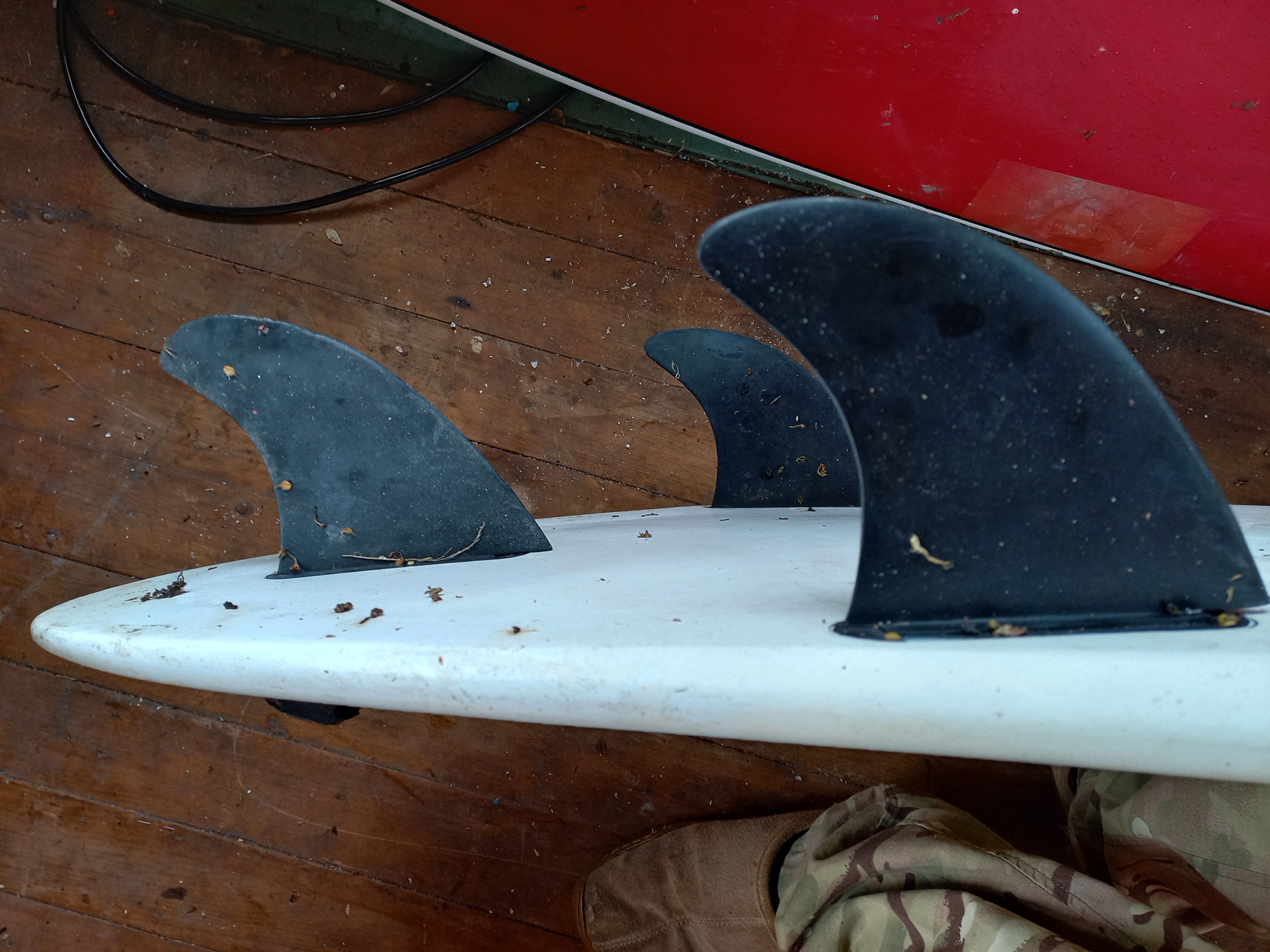 So, the question is, could the fins be the problem? Too much drag at the back and slowing it down and sinking it? The fins are small (11cm from base to tallest point 12.5cm across base), it does look like a lot of toe in, and I thought that toe in helped to speed the board up?