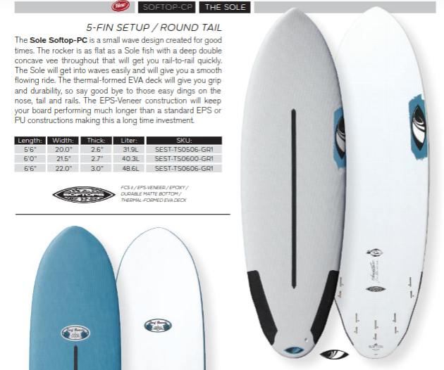 Most of the sponge boards are geared to beginners. There's not many soft versions of actual high-end shapes. ( if that makes sense ). There however a custom signature line from Surftech softops. The shaper for Felipe Toledo , Marcio Zouvi of Sharpeye, makes the "Sole" mode, with FCSII five-fin setup.