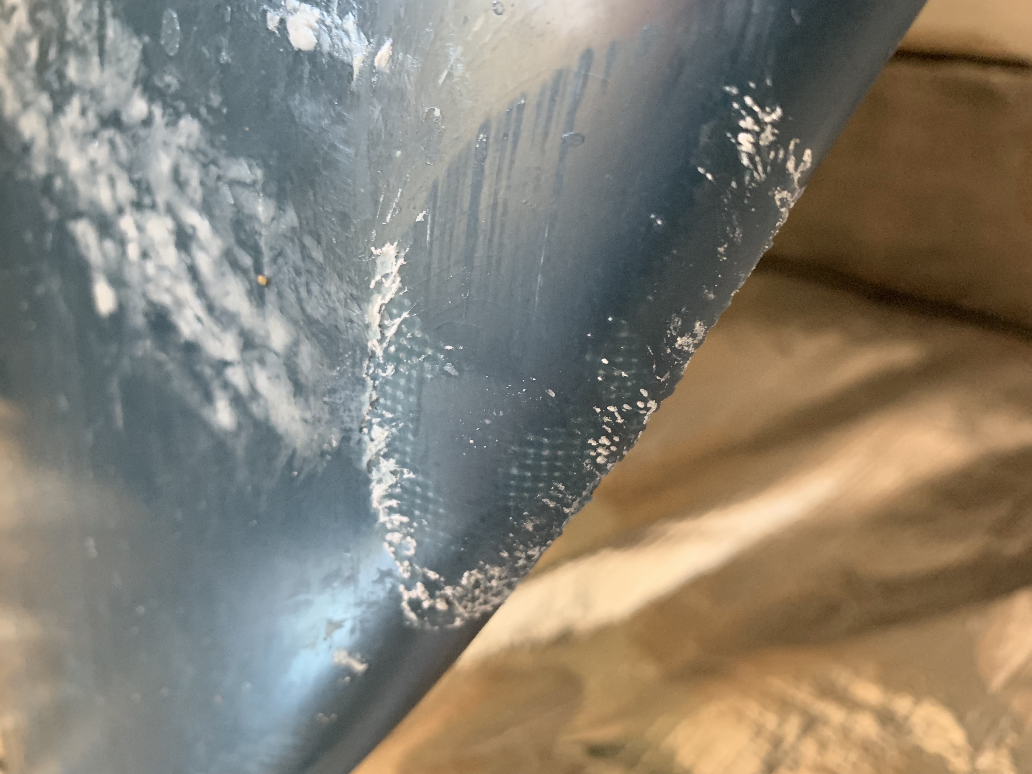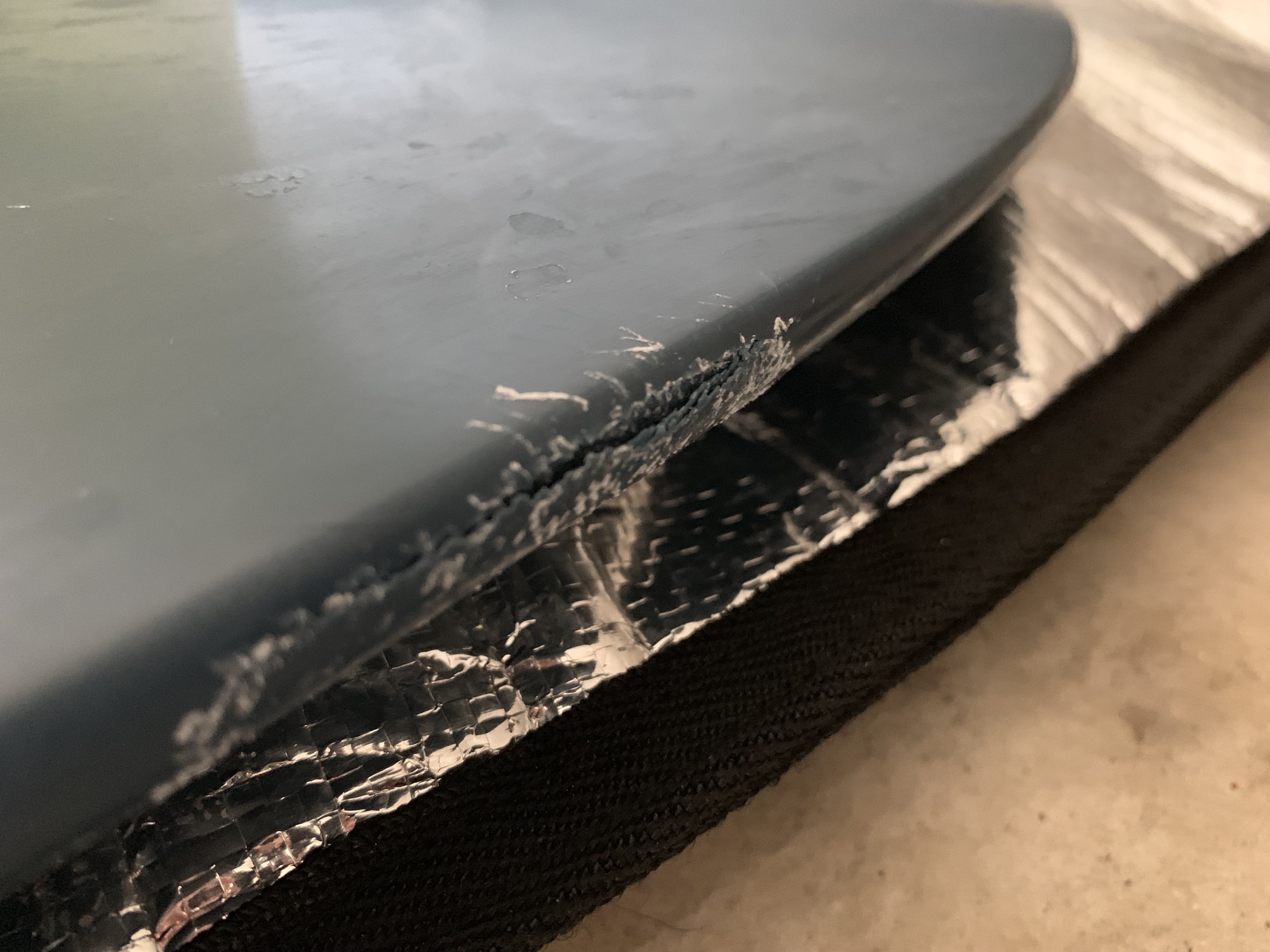 Hmm...just a standard PU board, 6+4oz top, 6oz bottom glassing? It could also be this is from a previous repair. I don't remember whether the previous repair was on the left or right rail