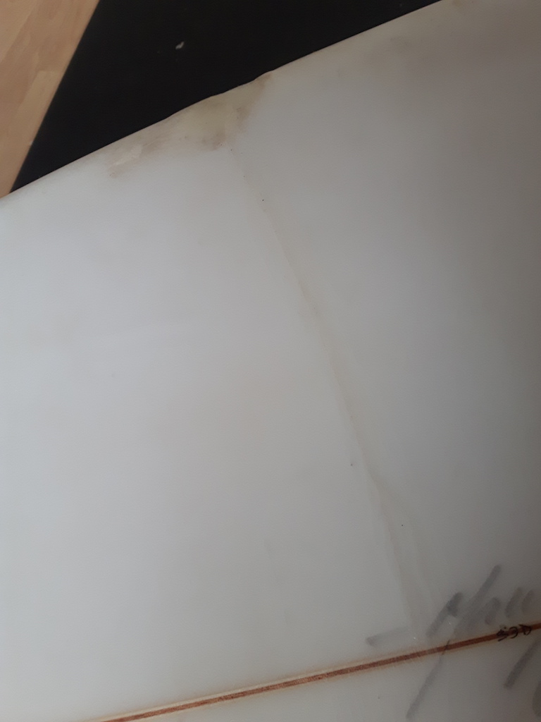 I just bought a secondhand board for pretty cheap. When I was inspecting it, it looked a little beat up but I figured I could just get it repaired professionally and still have gotten a good deal. Anyway, can this crack be fixed? It is on the bottom, about 1.5-2 feet from the tail. It goes from the rail to the stringer. It appears to be just a crack in the glass to me, but from what I've been reading, it may be more of a problem than I thought. Wondering if this is fixable? Or if I should just count my losses and surf it til' it snaps? It appears to be watertight.
