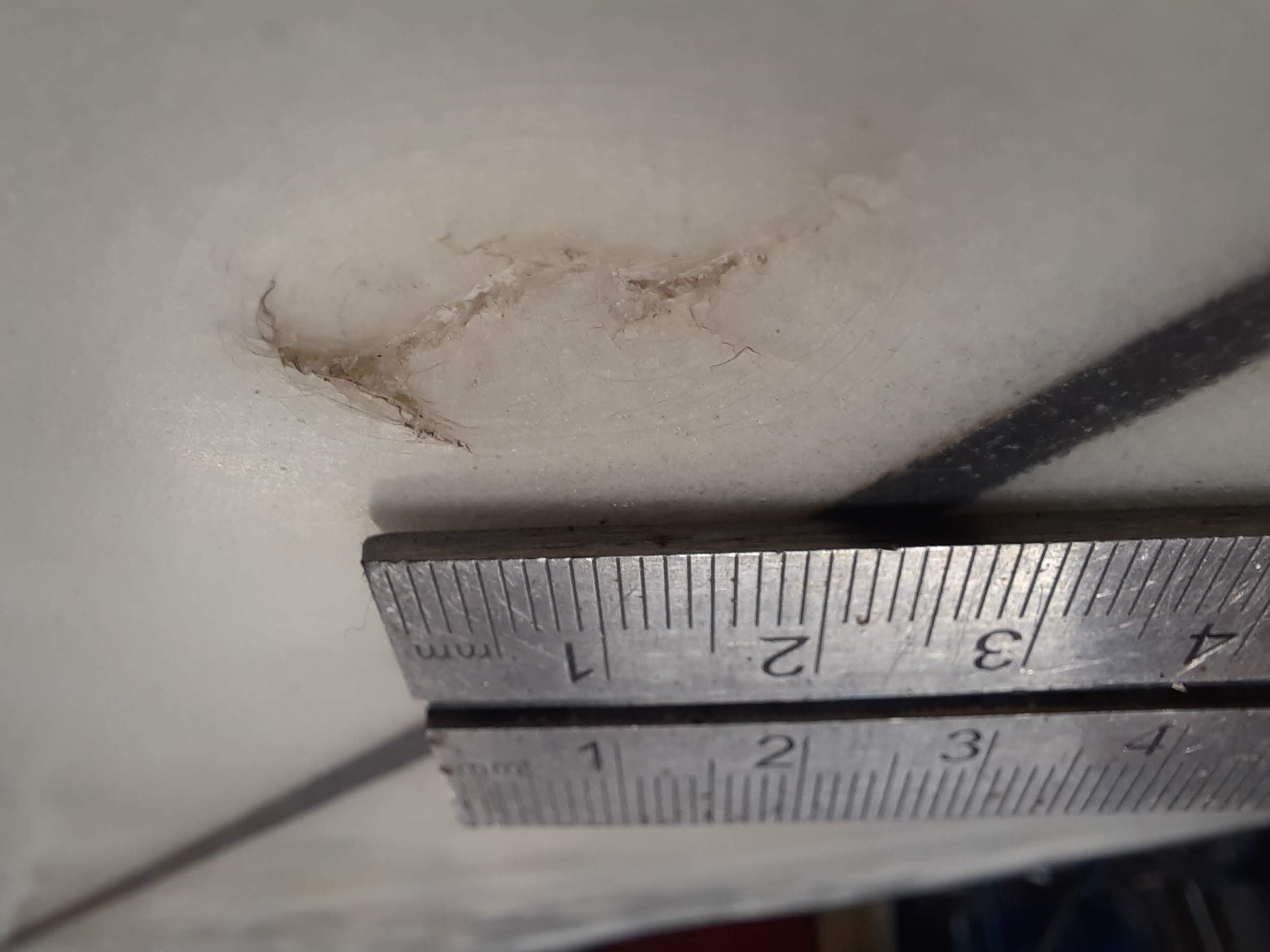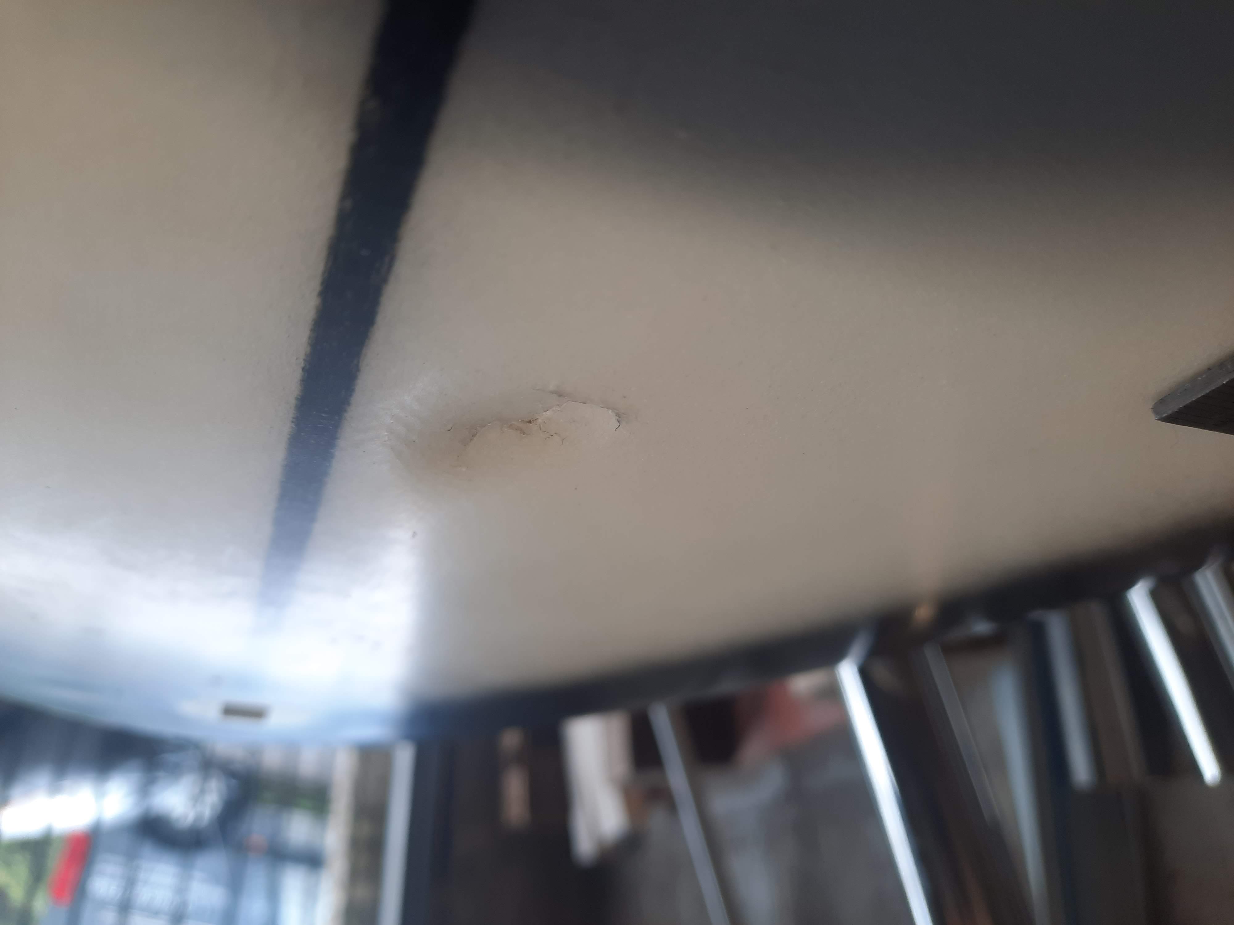 It's a 2-3cm dia dent where something has knocked it and it's certainly cracked through the glass. I have removed any loose glass flakes but am concerned if I just repair over what is left the crack could spread or there could be some delamination under the dent.