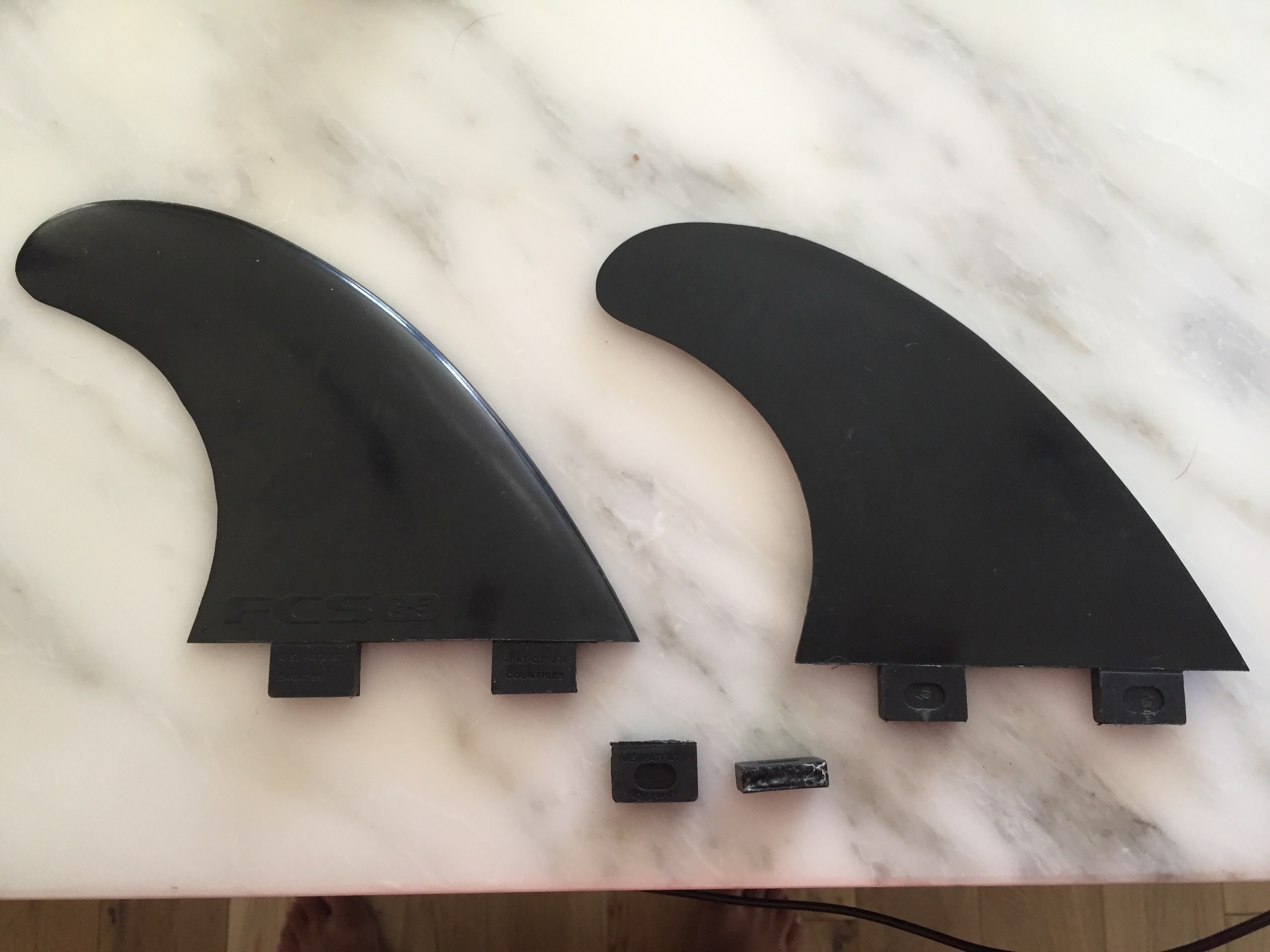 Luckily the tabs weren't lodged in, and I was able to pop them out with a toothpick. No expert on fins, but from what I've dug up on the web, stock fins that come w/ a board tend to be cheap to keep the overall cost down. Can't believe everything but that point makes a lot of sense, as a new board is already roughly $400 and up depending on what your looking for.