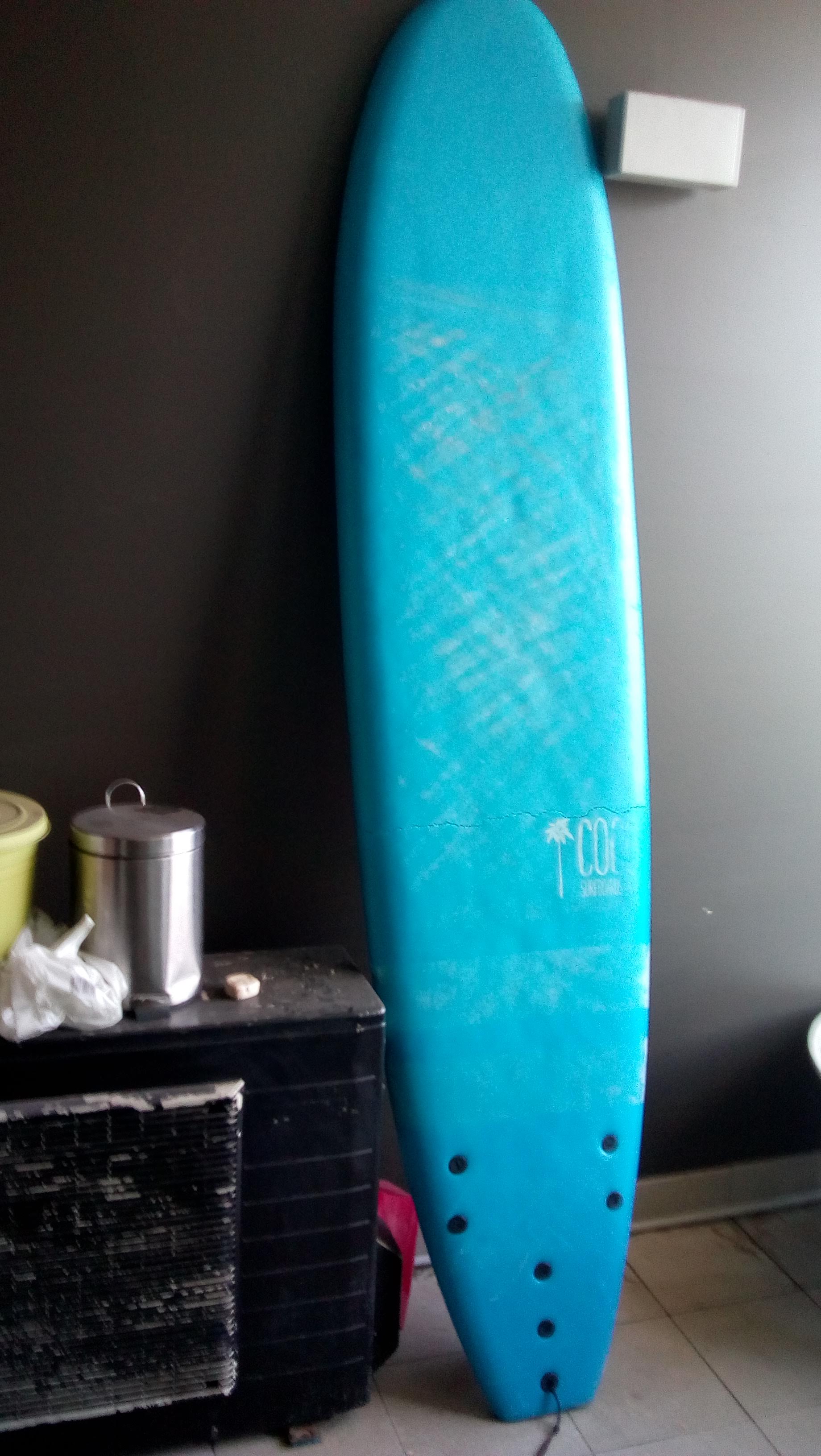I have recently broken my softboard (because of a too strong wave?), resulting in a large cut as you can see on the photos. Do you think it is fixable? I went to a surf shop and was told that it is not, but I don't want to believe it :)