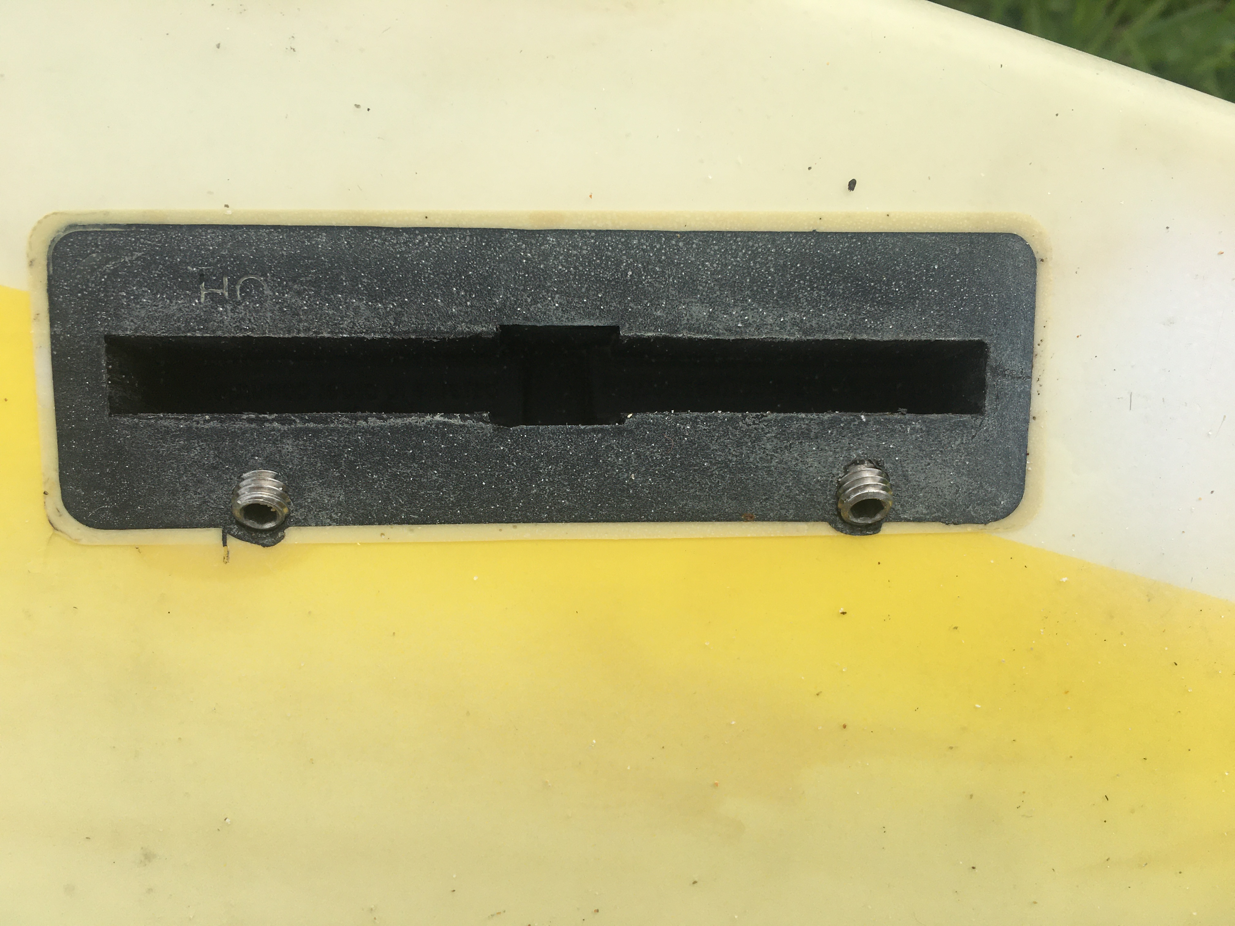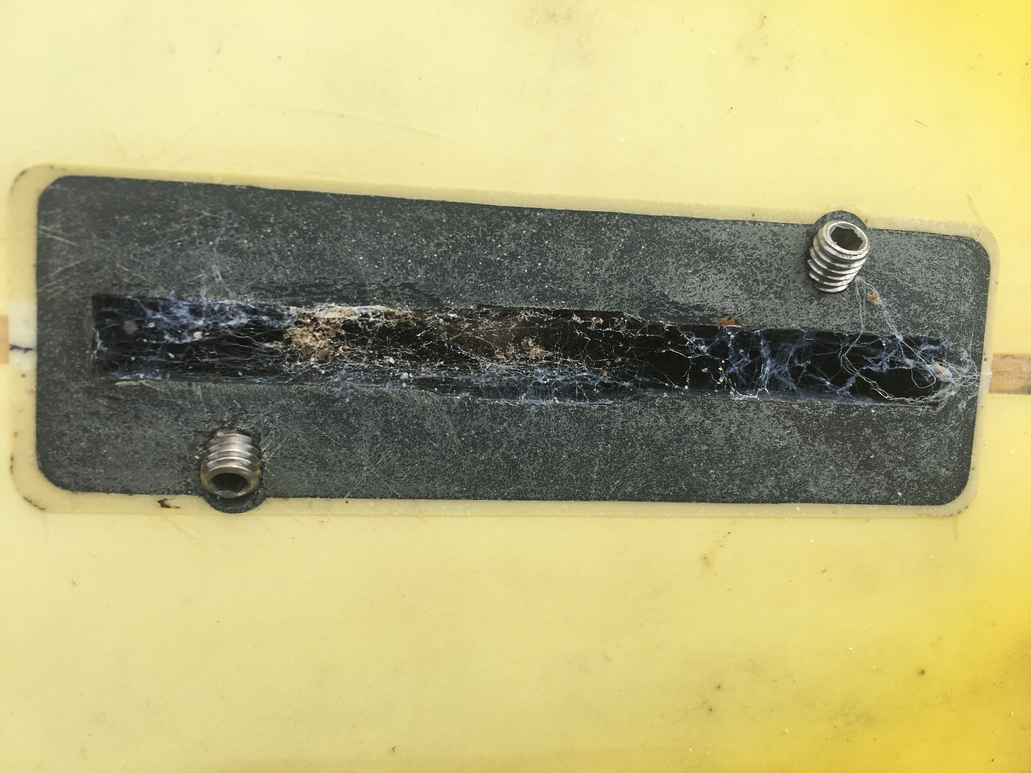 It’s 6’3” and has a single slot fin box with screws on the sides.