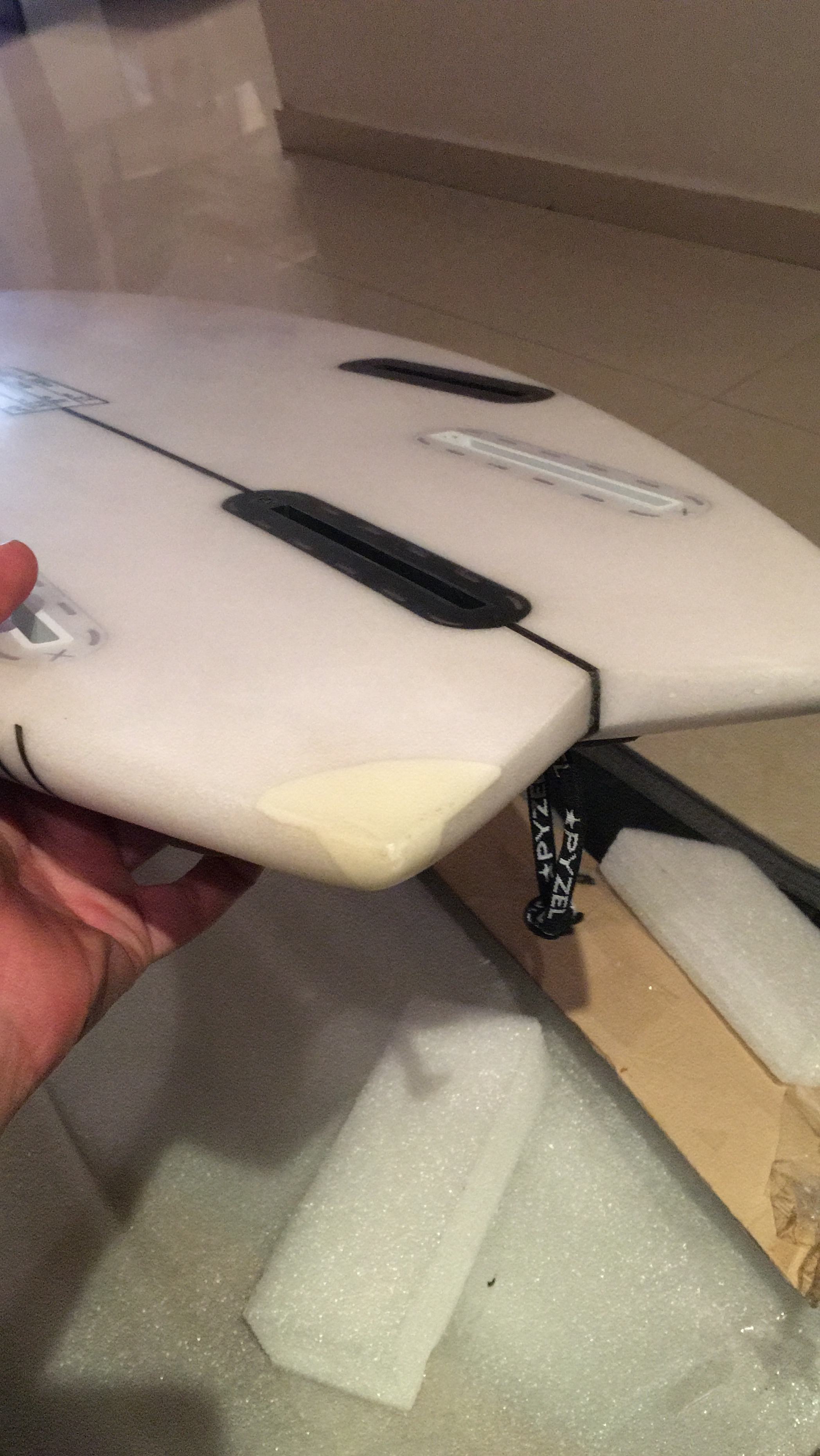 I'm a little suspicious, why does the repair look yellow? Is there a possibility that he damaged while surfing and water got inside and this is the reason for the yellow colour?