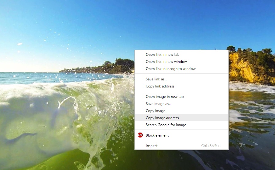 1. Bring up the picture, right click and choose "copy image address" from the popup window.