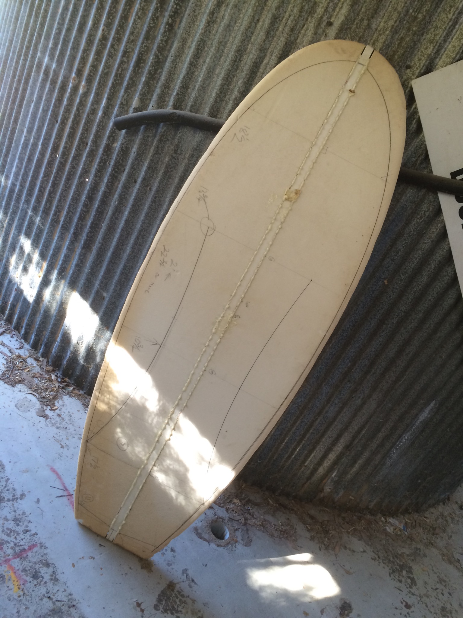 My shaper is Jed Done of Bushrat Surfboards, he had an ideal blank and a couple of hours discussion got all the ideas in the melting pot!