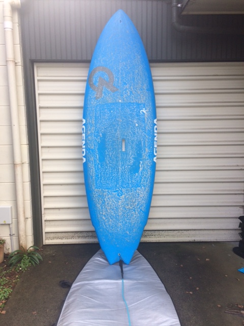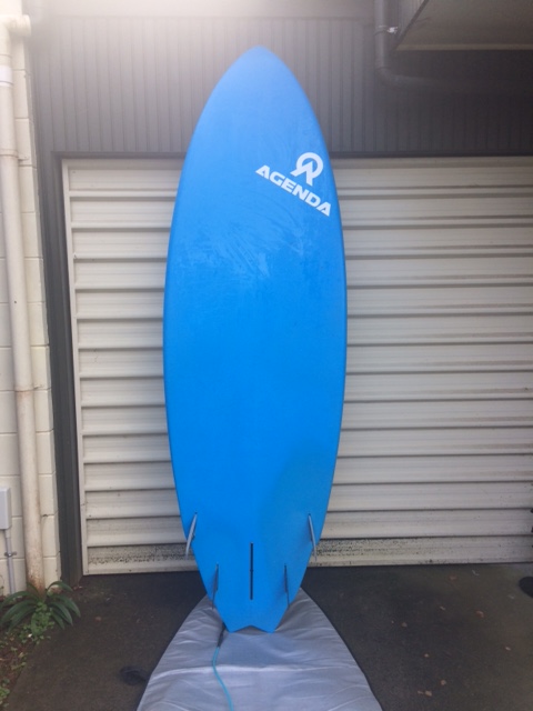 The next day I ended up buying this- a 75yr old guy had it custom made on the end of a run of the agenda boards in an asian factory. 8'6 x 31 x 4 1/2. 120l. Double flyer swallow tail with a 4+1 fin box. HEAVILY glassed.