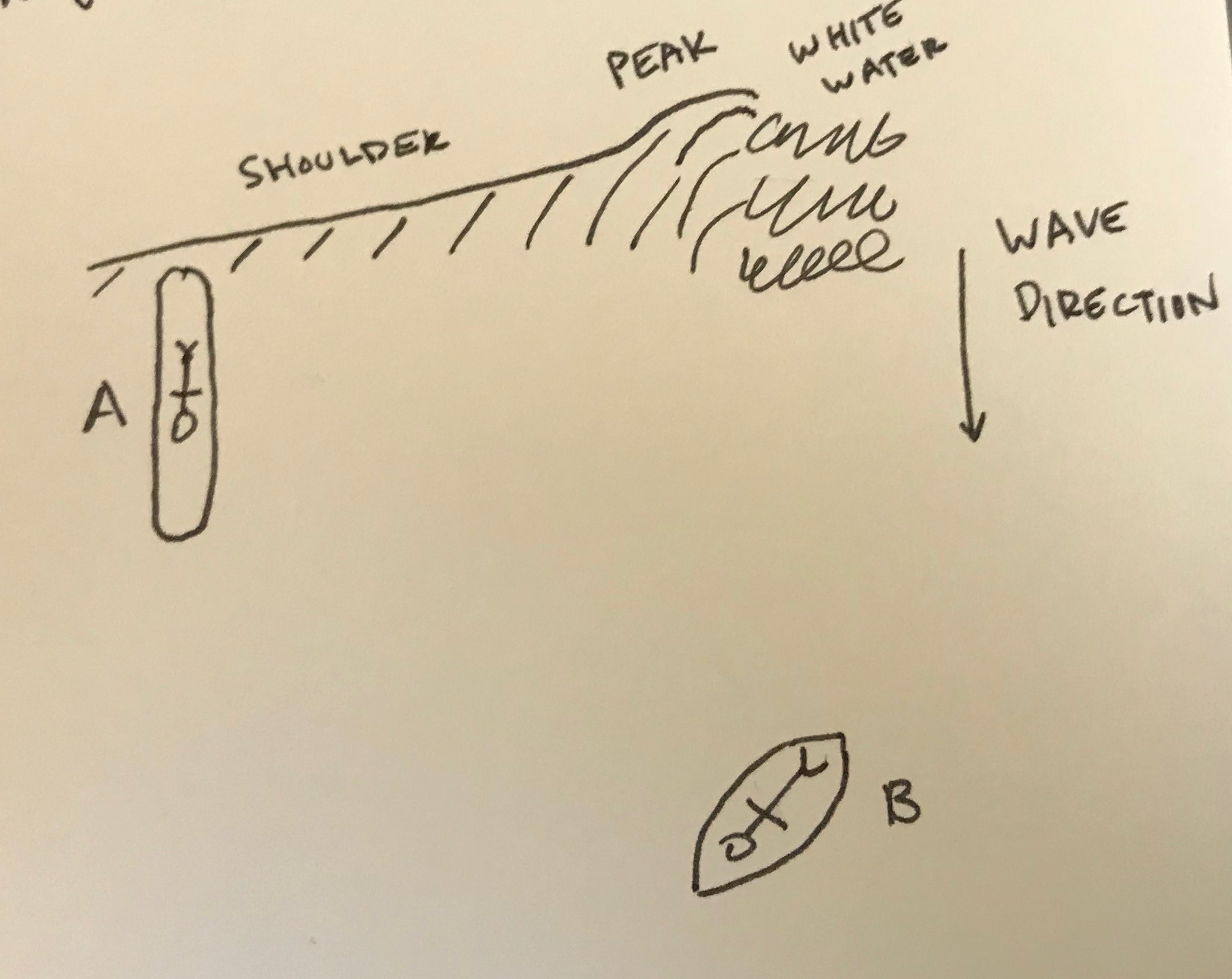 At Waikiki, “A” would fade left, put his rail over “B”s back and spray him ( or just run him clean over )